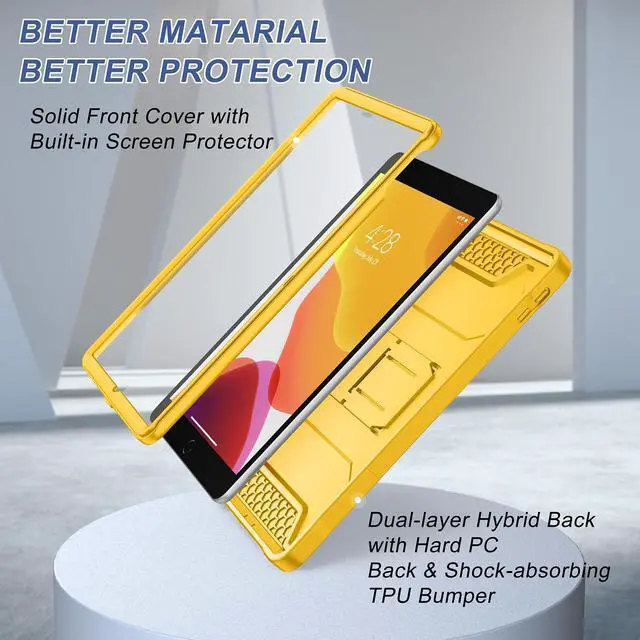 Soke Case for iPad 9th/8th/7th Generation 10.2-Inch (2021/2020/2019 Release), with Built-in Screen Protector and Kickstand, Rugged Full Body Protective Cover for Apple iPad 10.2 Inch - Yellow