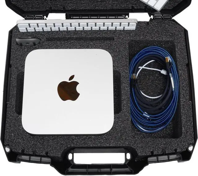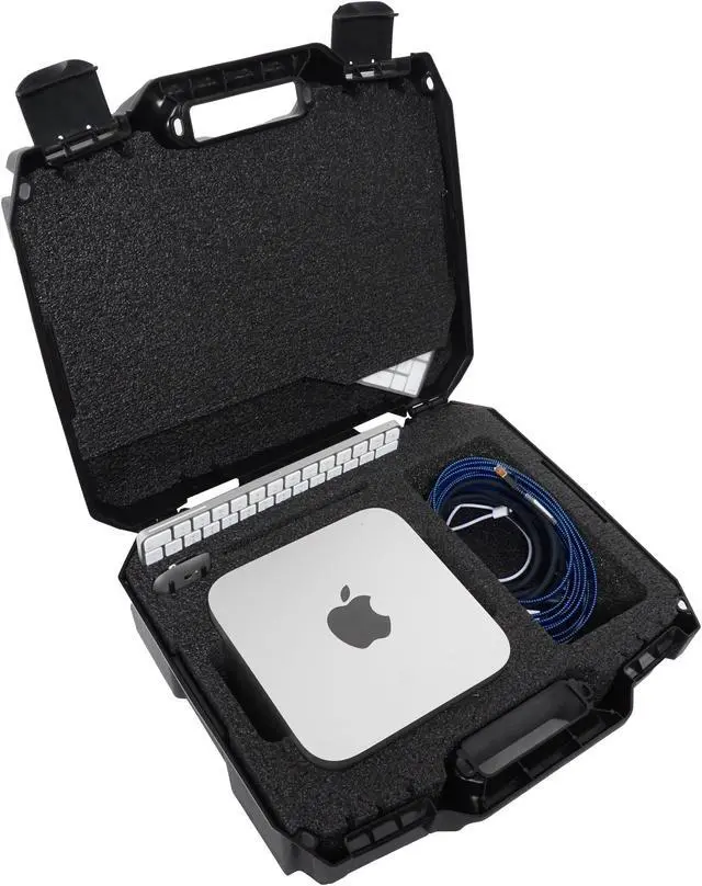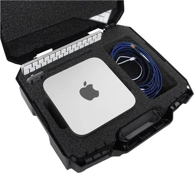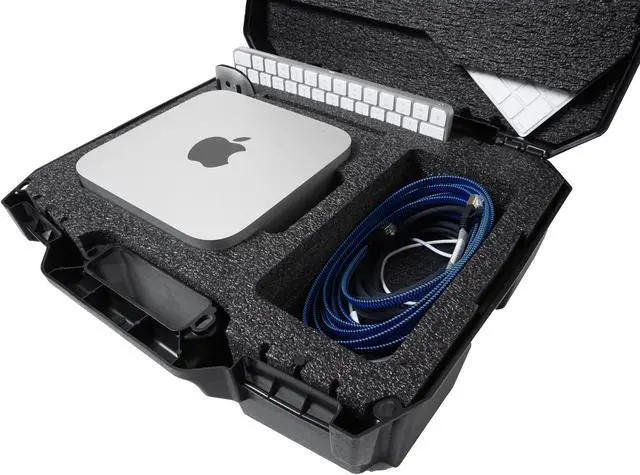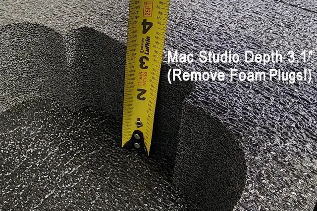 Case fits Apple Mac Studio (M1, M1 Max, M1 Pro, M1 Ultra, M2, M2 Max, M2 Pro, M2 Ultra), Magic Keyboard, Magic Keyboard with Numeric Keypad, Magic Mouse, Magic Trackpad & has a large accessory pocket for cords, cables, & more. The shock absorbing foam is a military grade closed cell polyethylene that will last a lifetime, is non-abrasive, and is PRE-CUT to perfectly fit your Mac Studio and accessories. To fit the Mac Studio, remove the main cutout foam until the main pocket is about 3.0" deep.