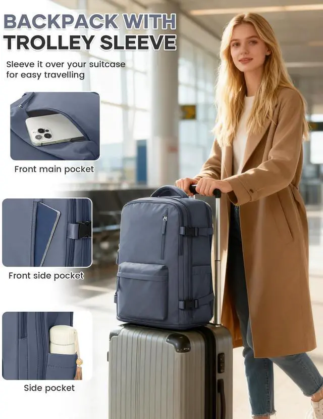 Great travel backpack for women This backpack is made of durable waterproof polyester, good air permeability and heat dissipation with two padded shoulder straps, offers lightweight carrying and strength reinforcement, relieve shoulder pressure, and maintain cool when wearing for a long time. And it's hard, solid, and doesn't fade.
