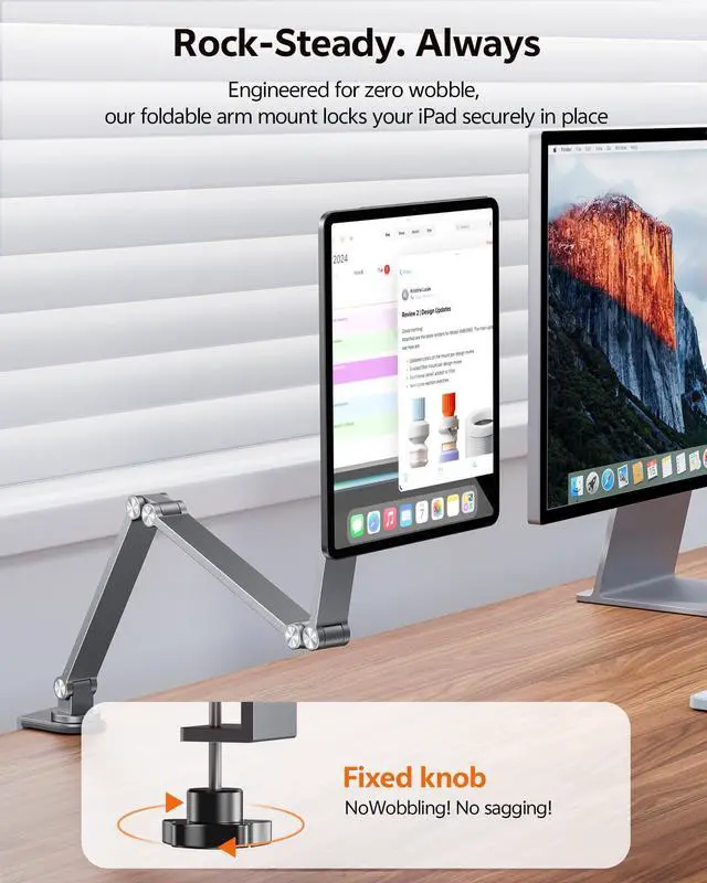[Powerful Charging Magnetic iPad Stand] Upgraded ipad arm mount with powerful magnetism and providing up to 18W fast charging for efficient power delivery. This magnetic iPad stand for desk supports wireless charging via three Pin Smart Connectors integrated into the stand. And equipped with a 2M USB-C charging cable, connect it to the stand and place your device on it to start charging