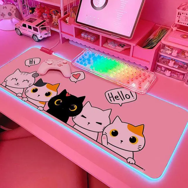 JMIYAV Pink Kawaii Cat RGB Gaming Mouse Pad 31.5 x12 Inch PC XL Large Extended Glowing Led Light Up Cool Mouse pad Desk Pad Non-Slip Rubber Jmiyav Computer Mouse Pad Cute Mousepad Mat 31.5 x12 Inch