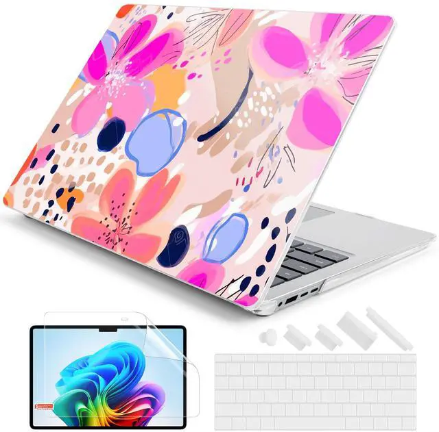 DONGKE Case for Microsoft Surface Laptop 2024, Windows 11 Copilot+ PC, 13.8 Inch Touchscreen Display, Protective Plastic Hard Shell Case with Keyboard Cover & Screen Protector - Floral Artistic