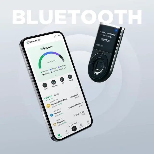 EFFORTLESS MOBILE USE WITH BUILT-IN CRYPTO SWAPPING - Seamlessly connect to the DCENT mobile app via Bluetooth. Easily swap crypto assets directly within the app, manage tokens, and interact with Web3