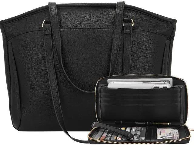 3.Travel-Ready & Ultra-Lightweight Design:Tote dimensions: 17.5"L x 5"W x 11.8"H (1.88lbs). Wallet dimensions: 8.5"L x 1.2"W x 4.7"H (0.5lbs). Luggage sleeve fits 2" suitcase handles. Dual shoulder straps for airport/commute ease.