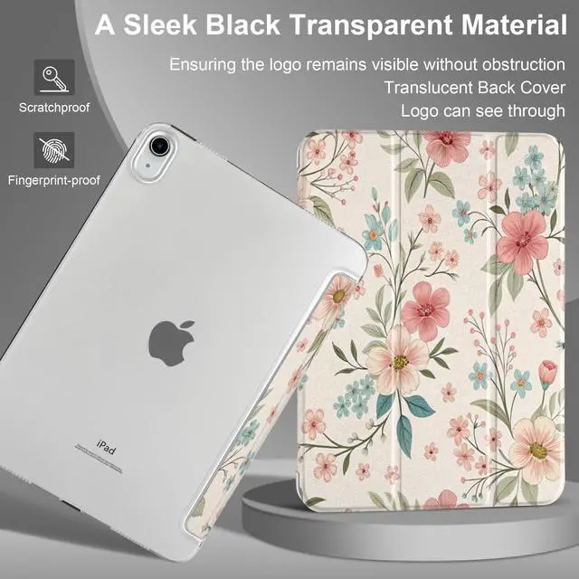 MecBevia Case for iPad (A16) 11th Generation 11 Inch (2025), iPad 10th Generation 10.9 Inch (2022), Hard PC Back Cover, Auto Wake/Sleep, Vintage Blossom