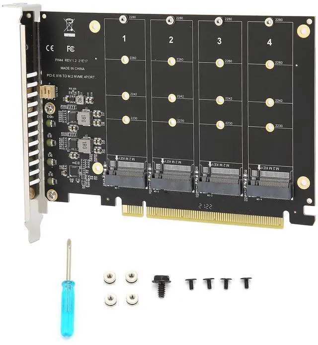 PCIE X16 M. 2 Adapter, 4 Port M. 2 NVMe SSD to PCIE X16 M Key Hard Drive Converter Reader Expansion Card, High 32Gbps Speed Controller Adapter for for for iOS for Linux (PH44)