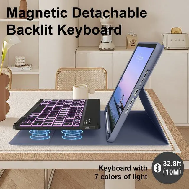 Perfect Gift: This product is suitable for friends and relatives. Because of the triple bracket design and non-slip materials, the iPad bracket can be safely installed in two different positions on the desktop, and offers 7 LED backlighting colors and allow vibrant colors to shine in the dark, 3 brightness options for a comfortable typing even at night. Let your givers have an excellent experience when they work or relax, and let them have a good mood when they use it. 3.