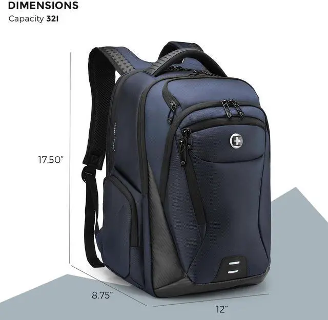 Swissdigital Design Men's Laptop Backpack for College and Business Travel with Integrated USB Charging Port and RFID Protection Fits Laptops up to 15.6 inch, Blue | Terabyte NG