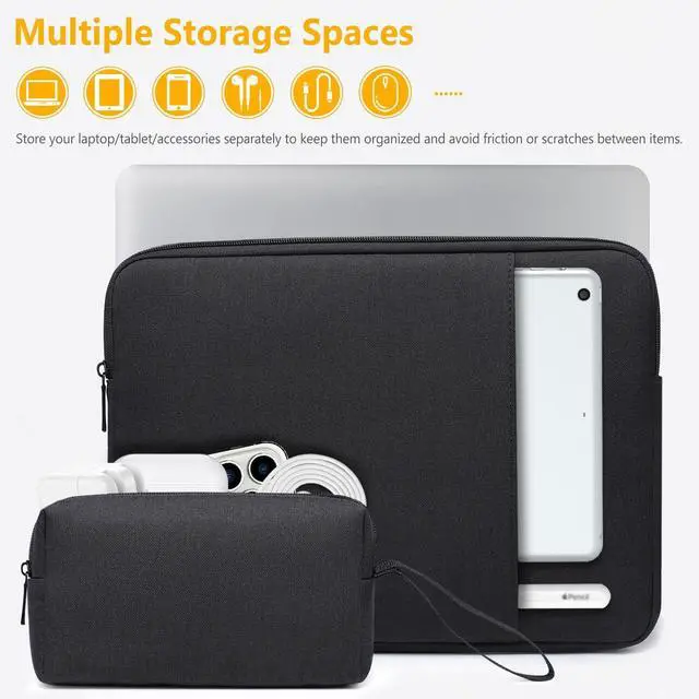 360° Multi-layer Superior Protection: The outer fabric is made of 1200D polyester fabric, which is water-resistant, scratch-resistant and wear-resistant. The middle layer is padded with 5mm thickness to absorb bumps and shocks. The soft velvet lining protects your laptop from scratches when you take your laptop out/in. There is also a 2cm wide protective ridge all around. As a result, your laptop is always tightly wrapped and protected with 360° multiple protection