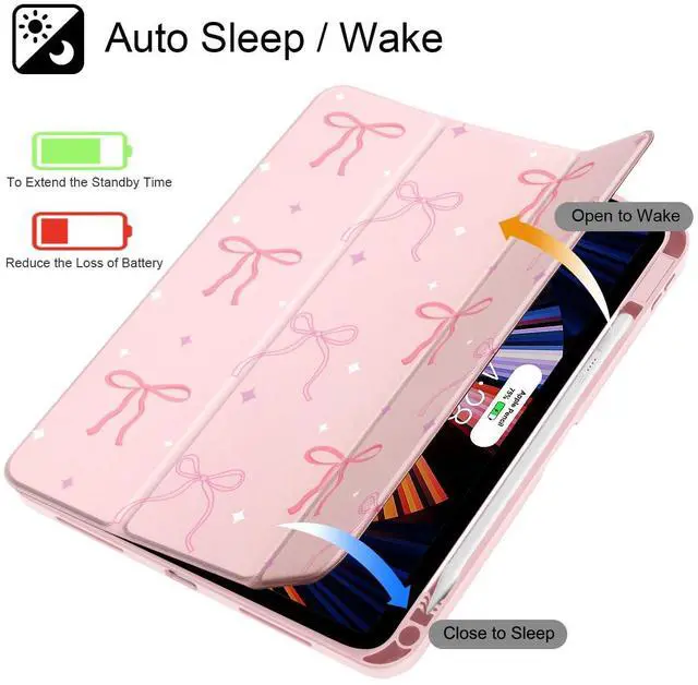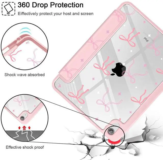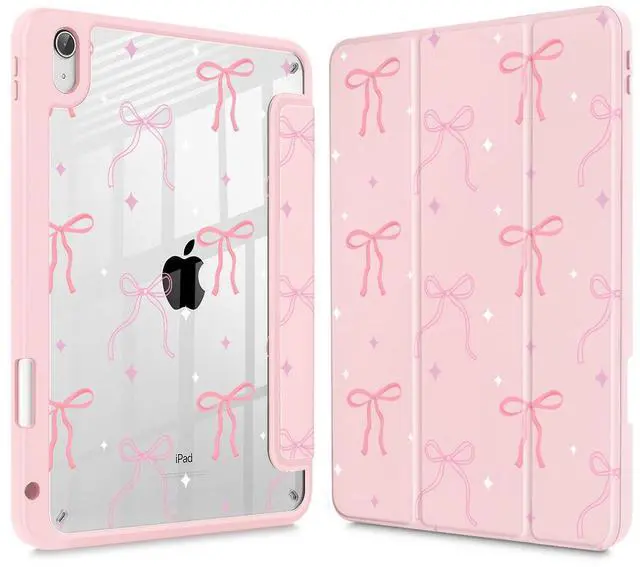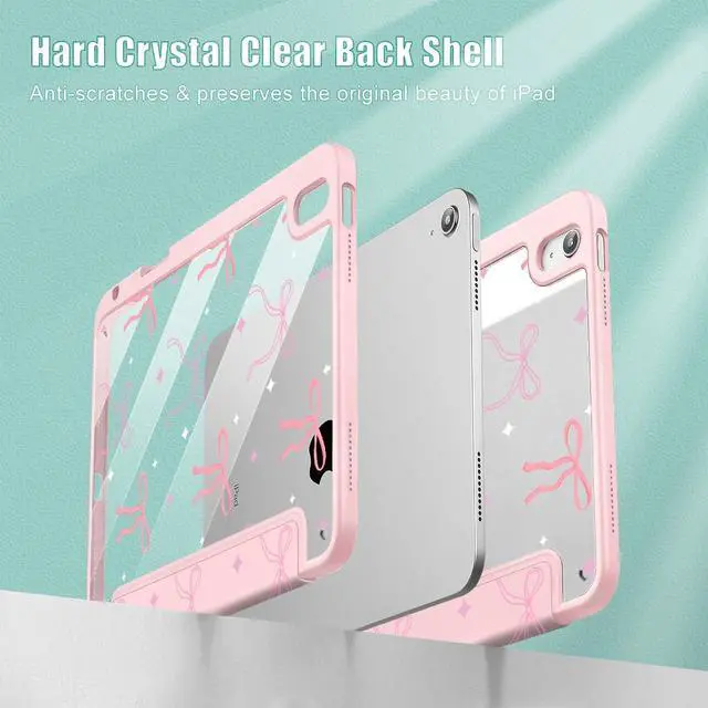 Tuiklol Case for iPad 11 inch (A16 Chip) 2025 Gen 11th / iPad 10.9 inch 2022 10th Gen, Buit in Pencil Holder with Shockproof Cover Clear Transparent Back Shell Auto Wake/Sleep,Pink Bows