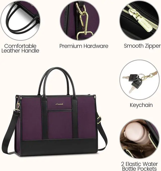 LOVEVOOK Laptop Tote Bags for Women Canvas Work Bag 15.6 inch Large Professional Teacher Purse Lightweight Computer Bag Briefcase Business Office, Purple-black