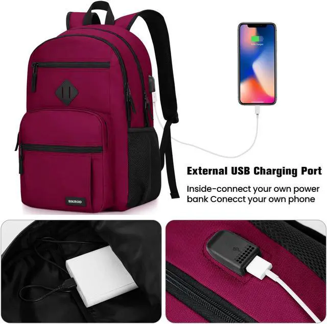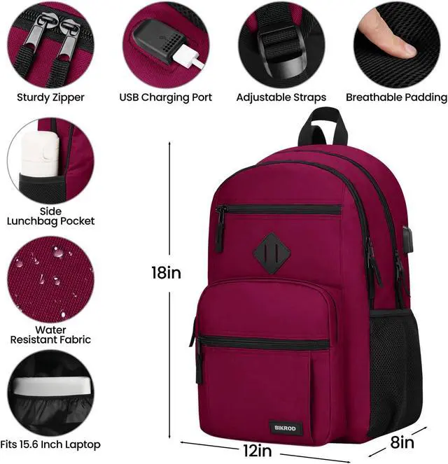 BIKROD Backpack for Girls Women, School Backpack for Teen Boys, Lightweight Casual High School Bookbag, Daily-use Travel Laptop Backpack with USB Charging Port Fits 15.6 Inch Notebook