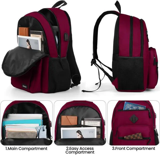 GREAT BOOKBAG STAY ORGANIZED: This laptop backpack for men and women has everything you need to stay organized! Our college backpack has two side water bottle pocket, a front utility pocket, a pleated front stash pocket, and a zippered front stash pocket.