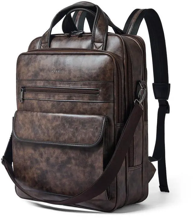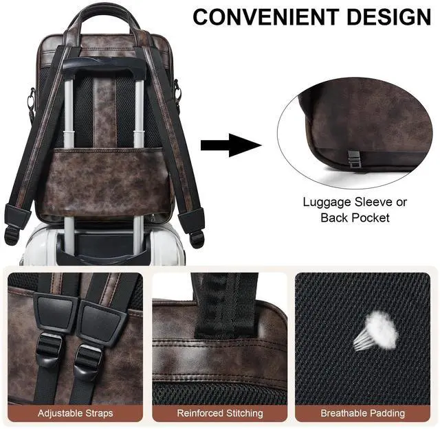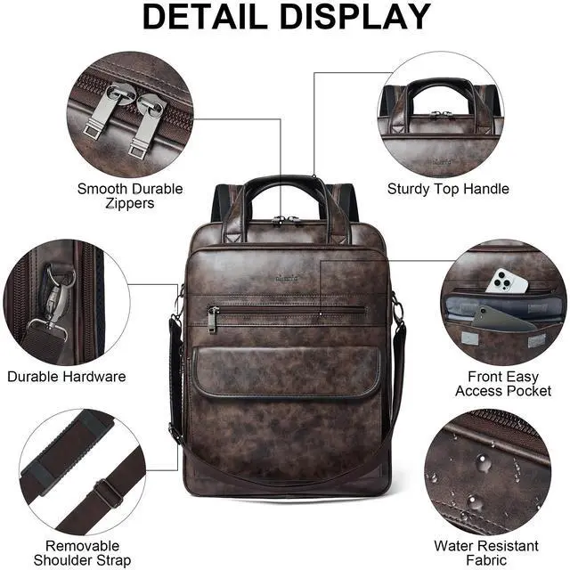 MULTIPURPOSE LEATHER LAPTOP BACKPACK: This backpack laptop offers three different carrying options for various occasions. It comes with a removable,adjustable shoulder strap and a top handle with velcro,so you can use it as a special shoulder bag,a casual daypack backpack or a stylish top handle backpack. Great as a college backpack,travel backpack purse and work backapck that can hold your daily essentials