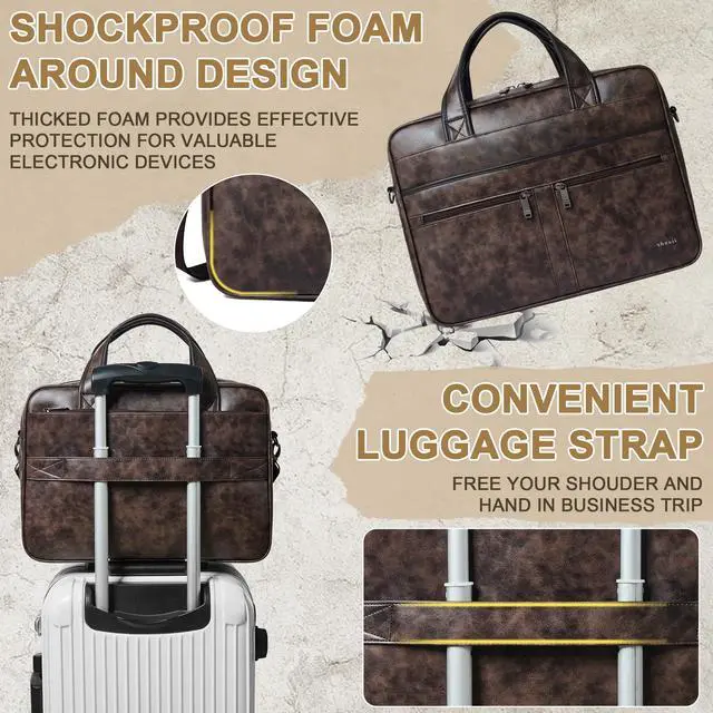 HIGH END MATERIAL-This Laptop Briefcase is crafted from water-resistant,wrinkle-resistant and scratch-resistant premium vegan leather made,which is sturdy and soft texture offer excellent feeling can withstand daily use.easily cope with a variety of scenarios such as everyday splashes and light rain.Smooth double metal zip for durability&strong;reinforced stitching won't easy to crack can be used for a long time.Professional Briefcase designed for those working woman who is chasing practica