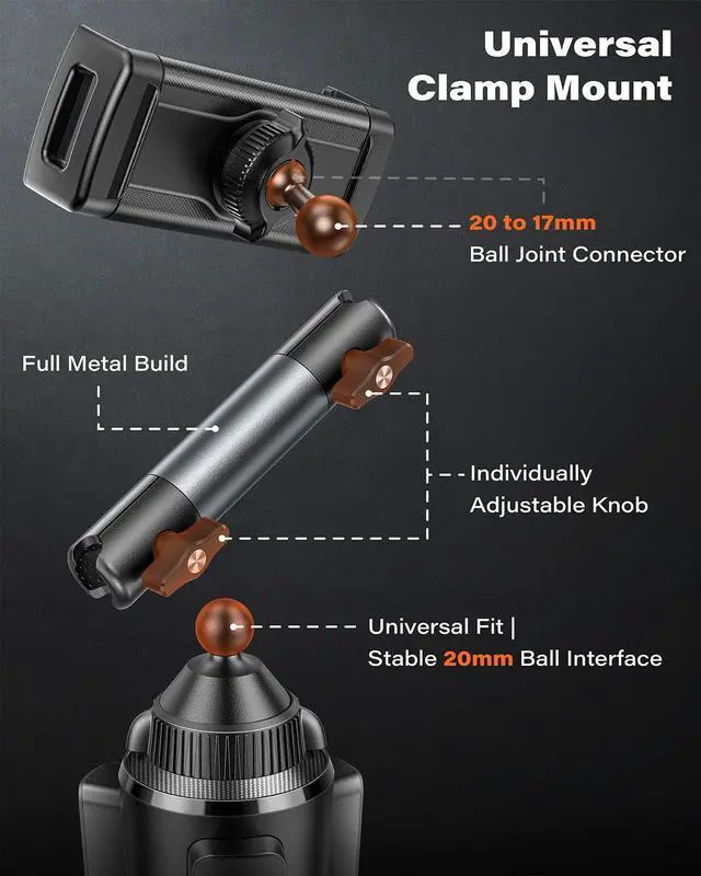 Effortless Tool-Free Installation & Modular Flexibility: This iPad cup holder mount requires no tools for quick and easy assembly, allowing you to set up or adjust your device in seconds. Its integrated 20mm ball mounting system seamlessly connects with the included tablet holder or any other