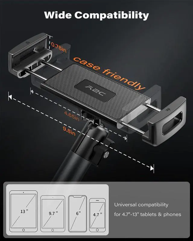 A2C Heavy-Duty iPad Holder for Car Cup Holder, 5.5" Stable & Adjustable Aluminum Alloy Arm, Tablet Mount for Car Truck Road Trip Essentials Compatible with 4.7" -13" Cell Phones & Tablets