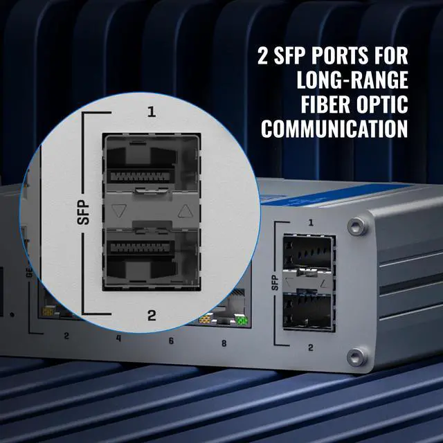 LONG-RANGE FIBER CAPABILITY: Equipped with 2 SFP ports for long-range fiber optic communication. This switch ensures reliable connections over greater distances. It is ideal for unmanaged Gigabit Switch applications in industrial & large offices, enhancing network reach and performance for high-bandwidth needs.