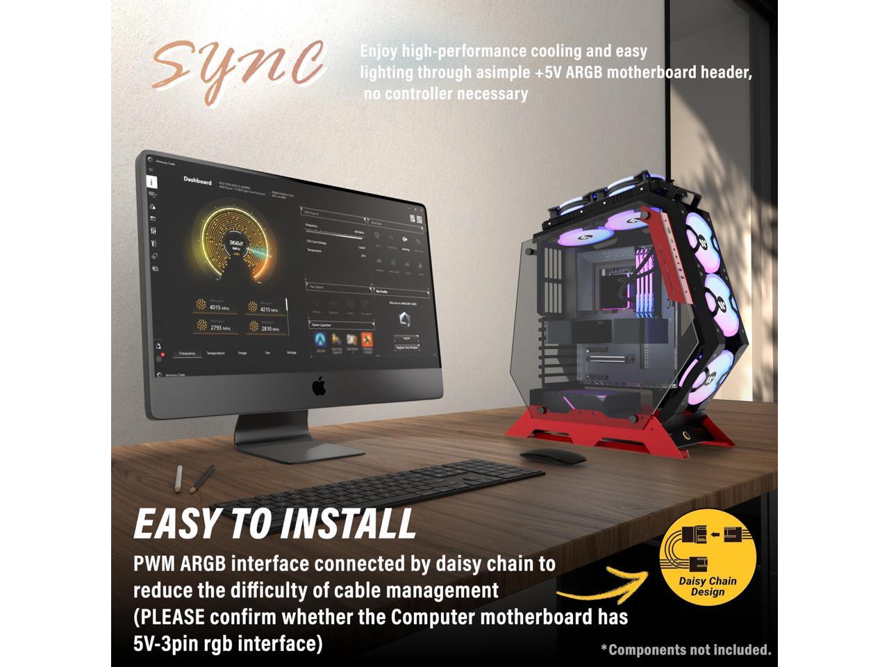 - [SYNC RGB]-- KEDIERS Tower Case Fans can be controlled by computer software. Enjoy high-performance cooling and easy lighting through asimple +5V ARGB motherboard header, no controller necessary.