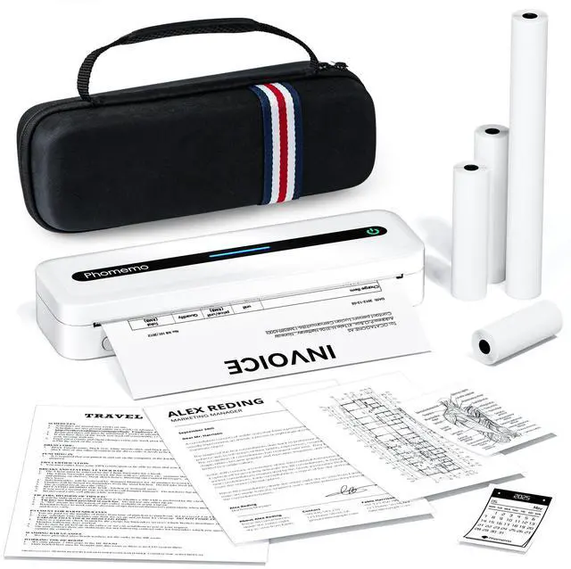 Inkless Portable Printer: Phomemo M832 portable printer use advanced thermal technology, no need for costly inks, toners or ribbons, offers cost-effective inkless printing. You can print office documents, contracts, invoices, lists, boarding passes, delivery order, study notes, web pages anytime, anywhere. The package includes a M832 printer, a carrying case, 4 rolls thermal paper (1 roll US Letter thermal paper, 1 roll 4.33" thermal paper,1 roll 3.15" thermal paper, 1 roll 2.08" thermal paper)