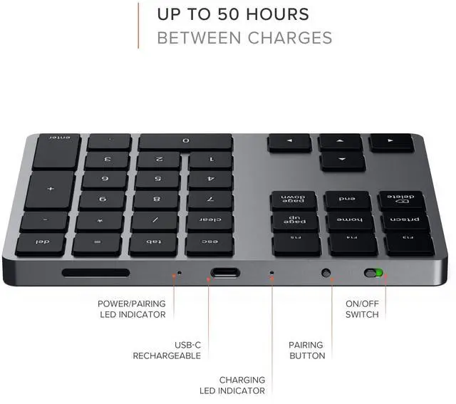 USB-C Rechargeable - Its rechargeable USB-C port allows you to continue work wirelessly while the keypad charges so nothing interrupts your workflow