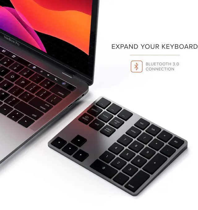 Expand Your Keyboard - The Satechi Bluetooth Extended Keypad features a full numeric numpad, navigational arrows and MacOS shortcut keys, over an easy-to-use wireless connection. Note: The keypad uses a U.S. English layout. If used with computers set to other language layouts, some keys may not match their printed functions unless the system keyboard language is changed to U.S. English