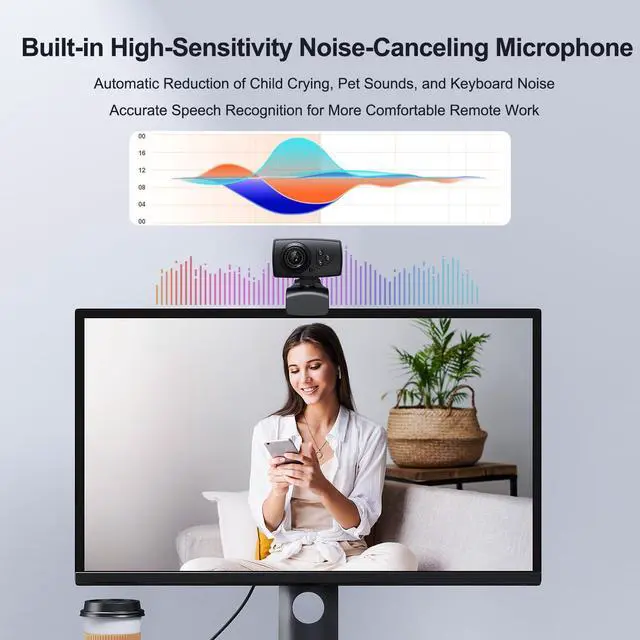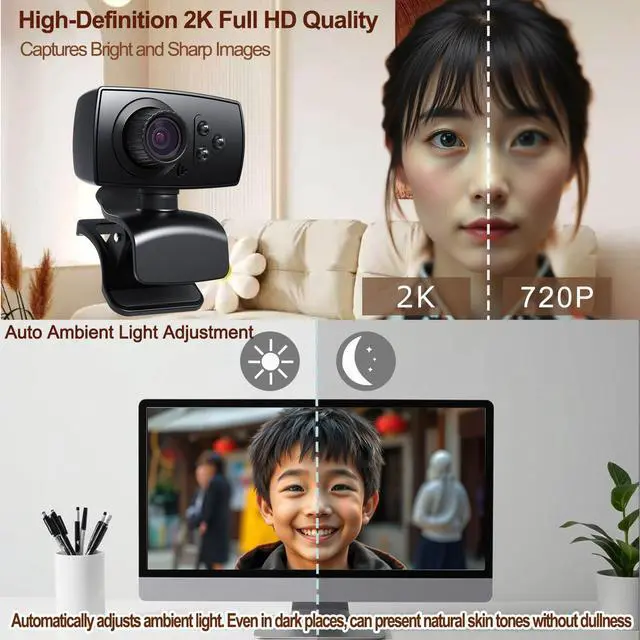 Automatic Light CorrectionThis webcam is equipped with automatic light correction function, which can automatically detect the brightness of the surrounding environment and adjust to the optimal brightness, always maintaining professional image quality. Allowing you to easily conduct smooth network conferences and clear video calls.