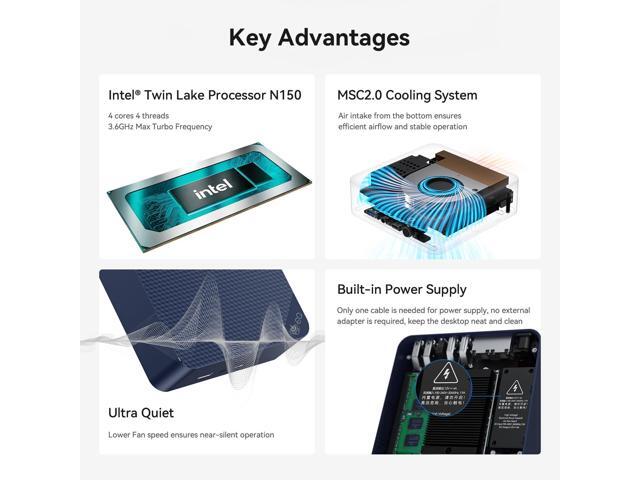 - Compact size & incredible performanceEquipped with processor N150 Max Turbo 3.6GHz( pre-installed with W-11. The compact size makes the mini pc a top choice for your light OFFICE work.