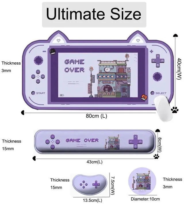 4-in-1 Large Gaming Mouse Pad, Keyboard Wrist Rest Pad & Wrist Support Mousepad Set, Pastel Game Over Mousepad, Cute Extended Desk Pad Waterproof Desk Mat for Home Office Study Game-Purple
