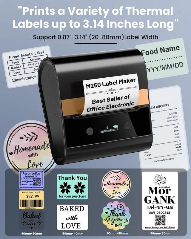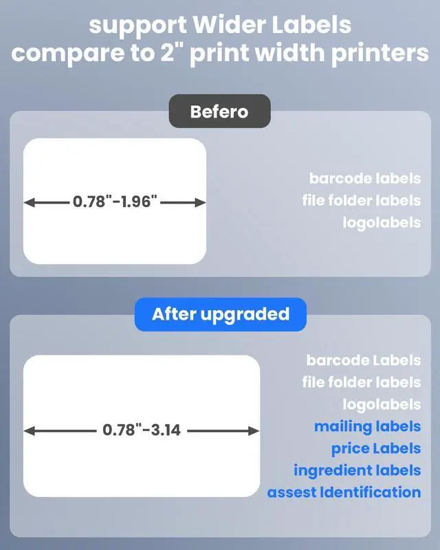 Industrial Label Makers 2024 Upgrade: Comparde with traditional 2 inch label makers, Memoking barcode label printer support from 0.78'' -3.14'' width thermal label, support more sizes than traditional 2 inch label maker machine Notice: The label maker can't print 4 x 6 shipping labels