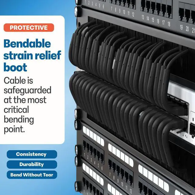 Bendable Strain Relief - Designed to protect the Cat 6a patch cable at its most critical bending point, our unique bendable boot prevents wear and tear, extending the life of your Cat 6a cable even in tight spaces while making installation a breeze