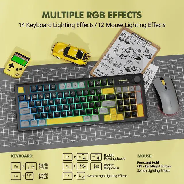 Creamy Keyboard with Number PadMac and Windows two-system layout, thocky keyboard with number pad and knob, ideal for both work and entertainment. The mouse supports 800/1200/1600/2400 DPI for precise control.