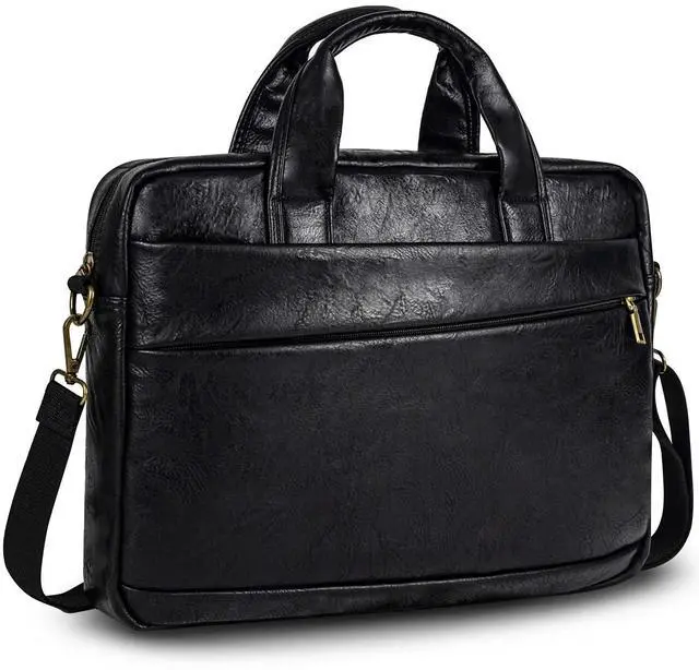 Faux Leather Messenger Bag for Men 17-17.3 Inch: Laptop Bag Briefcase Computer Handbags Shoulder Crossbody Bag with Padded Laptop Sleeve for Work College Travel, PU Black