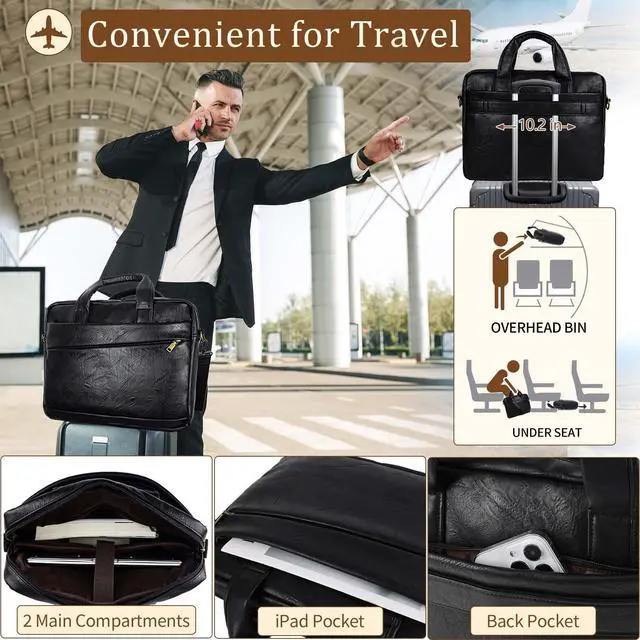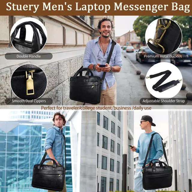 [17.3'' Messenger Bag ] Stuery computer shoulder bag is made of Premium PU leather, not just a computer bag, it can also be a briefcase for men, this handbag is particularly designed for people in business, office work and those who need to carry a laptop and other accessories. The luggage strap can be attached to suitcases, perfectly suitable for your trip