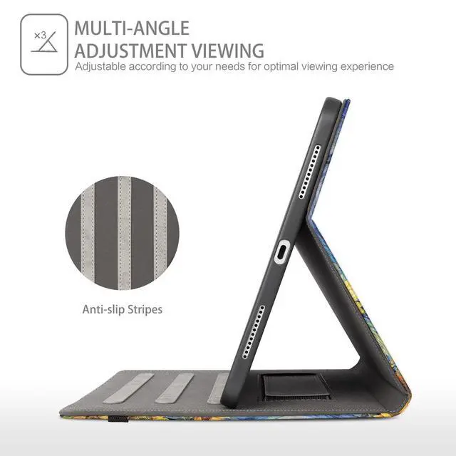 Number: A3354 / A3355 / A3356)Premium MaterialCase for iPad 10th Generation is Made of reinforced external PU leather dual layer construction and soft internal microfiber lining to give you 360 full protectionSmart Auto Sleep/ WakeCase for iPad 10th Gen instantly wakes up tablet when opened, and makes it go to sleep once closed (extend battery life). Upgraded Anti-slip StripesWith three anti-slip stripes, you can adjust it to multiple stable angles, holding up great for viewing, video watching and reading at home, or presenting at your meeting. Hand StrapBuilt-in hand strap, coupled with an elastic band to keep the case OPEN, give you a comfortable single-hand use experienceExternal Elastic BandWhen you don't use it, strap help you more firmer to fix your tablet. Do not have to worry about loss and loose. Front Document PocketDocument Pocket is designed for you to store your business cards, Cash, bank cards, notes or bills while on the go. Pencil HolderStylus Loop is more convenient save your Pencil.