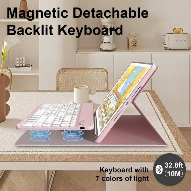 Perfect Gift: This product is suitable for friends and relatives. Because of the triple bracket design and non-slip materials, the iPad bracket can be safely installed in two different positions on the desktop, and offers 7 LED backlighting colors and allow vibrant colors to shine in the dark, 3 brightness options for a comfortable typing even at night. Let your givers have an excellent experience when they work or relax, and let them have a good mood when they use it. 3.