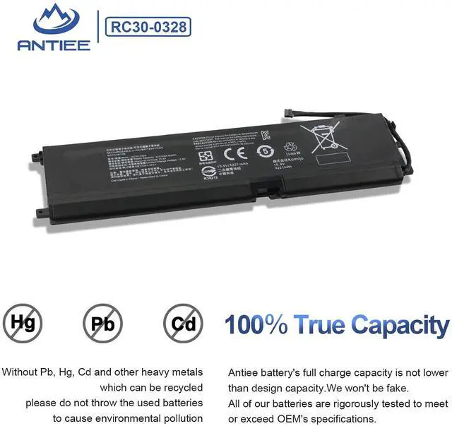 Condition: Brand new, from high quality materials, top circuit boards and smart chip. ^^ Compatible Part NumberRC30-0328 RZ09-0328 4ICP5/46/108. ^^ Compatible Laptop ModelsFit for Razer Blade 15 Base 2020 Core i7-10750H RTX 2060 RTX 2070 Max-Q RZ09-0328X RZ09-03286 RZ09-03287 RZ09-03289 RZ09-03287E22 RZ09-03287E22-R3U1 RZ09-03287E22-R3B1 RZ09-03287E22-R341 Series Fit for Razer Blade 15 Base Edition 2021 i7-10750H RTX 3060 RZ09-0369 RZ09-0369X RZ09-0410 RZ09-0410X RZ09-0410BE22-R3U1 RZ09-0410BEA2-R3U1 Series Notebook ^^ ANTIEE PromiseEveryone of our replacement batteries has tested with strict quality control standards to ensure the true capacity, stable current and low self-discharge. All ANTIEE batteries are UL / CE / FCC / RoHS Certified for safety, we are confident in the performance of the replacement battery. ^^ ANTIEE After-salesWe offer 12 months of warranty and 24 x 7 email support. If you have any questions while using your product, please contact us via the "Your Orders" section of your account. We guarantee a response within 24 hours.