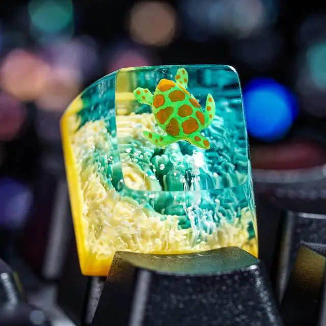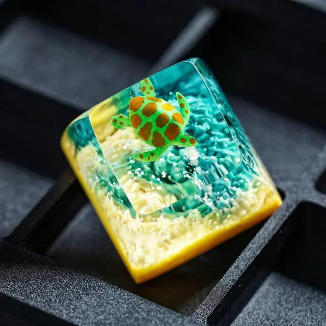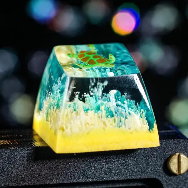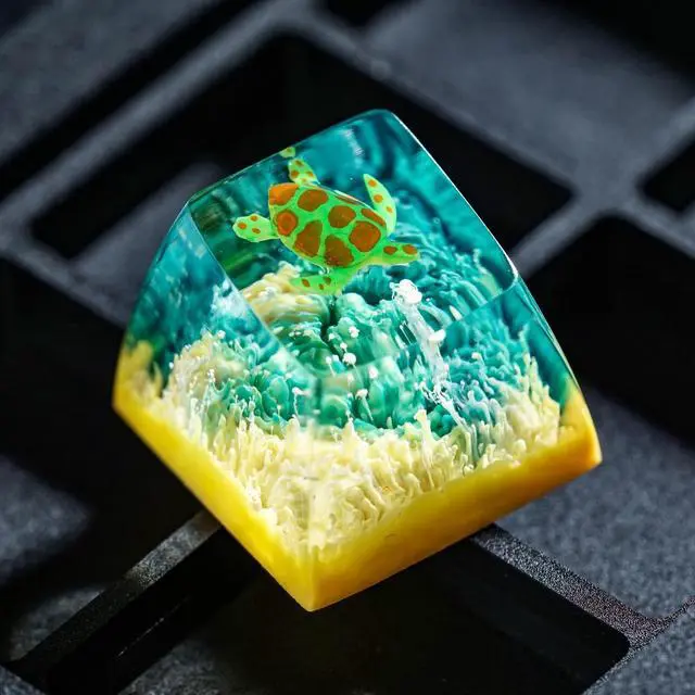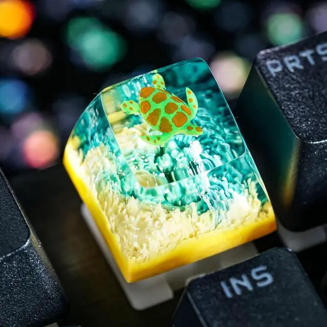 Sea Turtle Artisan Keycap Light Yellow Green Coral R1 SA Profile Custom Sea Creatures Keycaps 1U ESC Handmade Gaming Resin Key Cap Cherry MX Switch Compatible Mechanical Keyboard Turtle Lover Gift