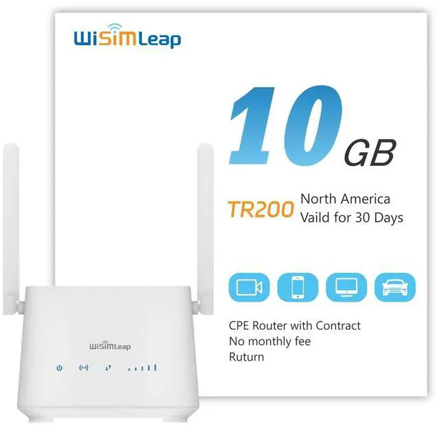 Product Performance: TR200 External High Gain Dual Band Wi-Fi Antenna, supports global bands and multi-operator coverage with dual-band WiFi ( 2.4 & 5 GHz LTE). Connect up to 32 devices simultaneously, its offering expansive 360-degree coverage. ^^ Usage ScenariosThe TR200 is perfect for RVs, homes, offices, outdoor events, and as an internet backup. ^^ Multi-Operator SwitchingThe T200 router comes with a data plan 100GB for North Amrica, that can switch between multiple major carriers simultaneously, eliminating single-carrier coverage dead zones. With one device, you get the best of multiple carriers' services! ^^ Product comes with a built-in SIMNo need to buy a physical SIM card! The device comes with a built-in SIM, and you can easily recharge global data through the traffic mall (Wisimleap store). Just activate it, and you're ready to go! ^^ Global Flexible Data PlanFlexible, affordable global data with no contracts, no roaming fees, and no registration needed. Enjoy multi-network coverage with great value for money!