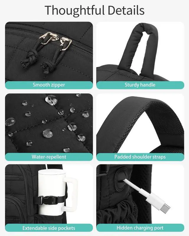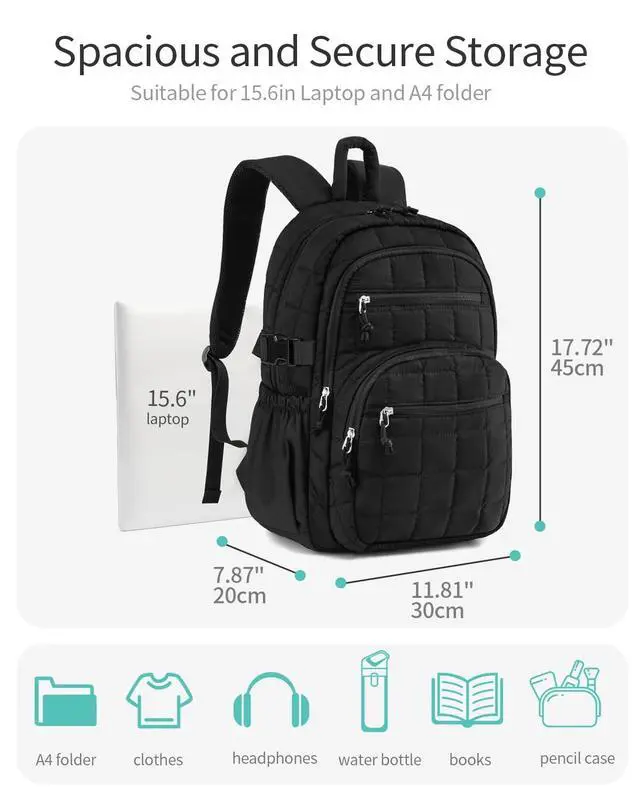 • Upgraded Puffer Backpack for Women: The large side pouch pockets designed with adjustable buckle to hold up the Large Capacity Cups. Ideal for college students, teacher, nurses and those always on the go. Stay hydrated on commuting or working days! (The water bottle not included)