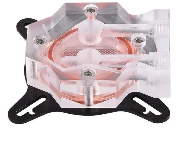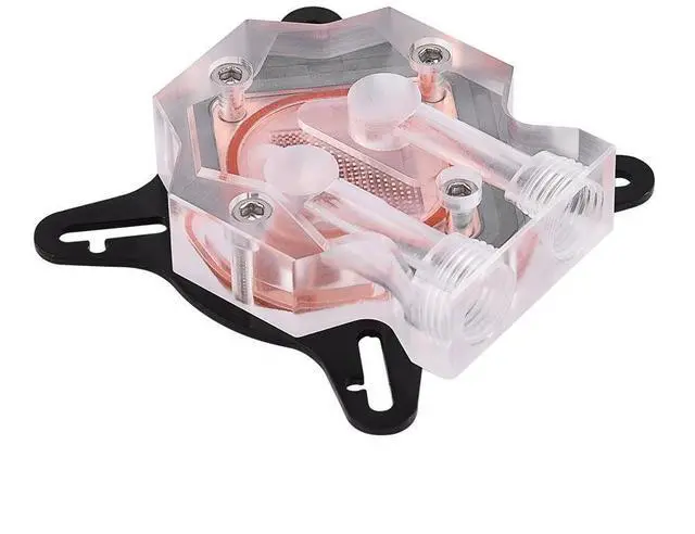 Features: This is a universal Water Cooling Block for GPU. Red copper at the bottom, top cover is transparent Acrylic, and the buckle holder is made of stainless steel. Copper base is precisely cut, the between each cut copper is about 0.5 mm laterally and vertically. 25 water channels. High performance copper base, processed with anti-oxidization technology. Perfectly fit the GPU, carry away more heat from GPU quickly.