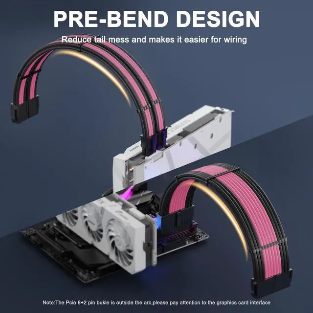 Upgrade your PC's aesthetics and functionality with the Sirlyr PSU Cable Extension Kit. With a unique pre-bent design and pre-installed cable combs, we make cable management easy and visually appealing. Our 8-pin PCIE cables come gold-plated, offering stable power supply and protecting your hardware. The unique colorful design fits well with various build, giving it a cleaner, more professional look. Trust Sirlyr for your PC cable extensions and enjoy quality assurance with our free one-year replacement service for any quality issues. Give your PC a visual and functional boost with the Sirlyr PSU Cable Extension Kit today!
