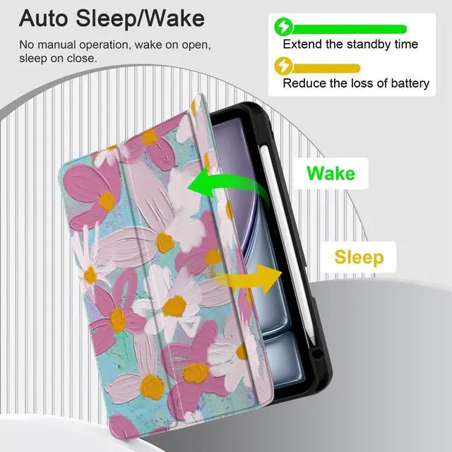 M3/M2 Chip Characteristic: 1. The case is made of premium PU exterior, microfiber lining and soft TPU back cover 2. Case automatically wakes your tablet when opened and puts it to sleep when closed 3. You can easily fold the cover into different positions to create a stand for reading, viewing, typing, or making FaceTime calls 4. Built-in pencil holder, grab your tablet pencil effortlessly whenever you want, easily carry your tablet pencil with your device 5. Easy to Installation and remove 6. Convenient to use all the controls and features