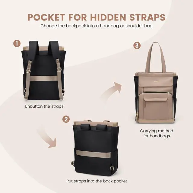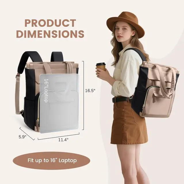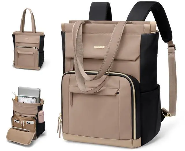 With a top-loading, integrated main compartment, this convertible tote backpack offers ample space for your belongings, making it perfect for college and young professionals ^^ This tote backpack seamlessly transforms into a tote bag or handbag, offering multiple carrying options for your convenience. Weight 1.12 lbs, this travel backpack for women ensures effortless portability and easy carrying, making your travel or daily commute a breeze ^^ Crafted from water-resistant nylon fabric and superior hardware, this work laptop backpack ensures better protection for your belongings in various environments ^^ This college backpack for women is not only practical but also a fashion statement, catering to your personal style and preferences ^^ With its practicality and style, Whether for travel, work, or daily use this stylish laptop backpack makes for an excellent choice for college learners, young professionals, or anyone with an active lifestyle