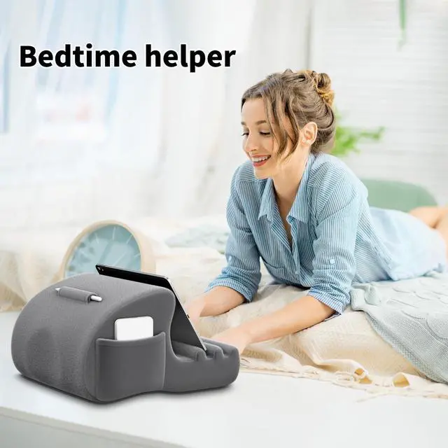 ^^ Deepened Grooves: The tablet pillow stand has widened and deepened fixing grooves, which can well fix your device so that it won't slip. The base of the tablet stand is made of high-quality high elastic sponge, not easy to deform. The surface is very soft plush polyester, which can be removed and washed to keep the tablet pillow holder pillowcase clean ^^ Convenient