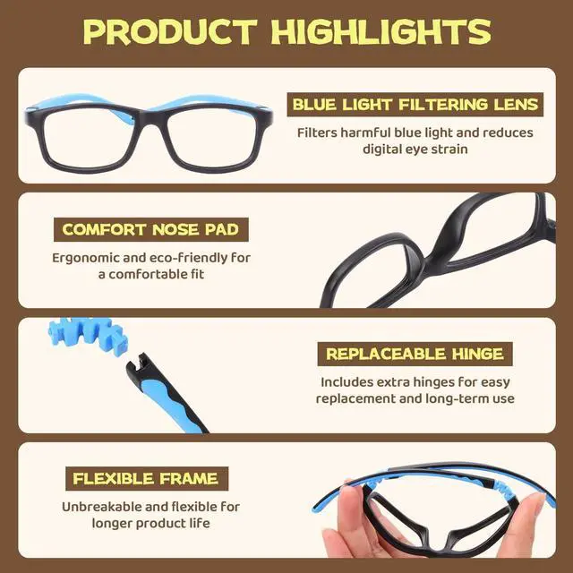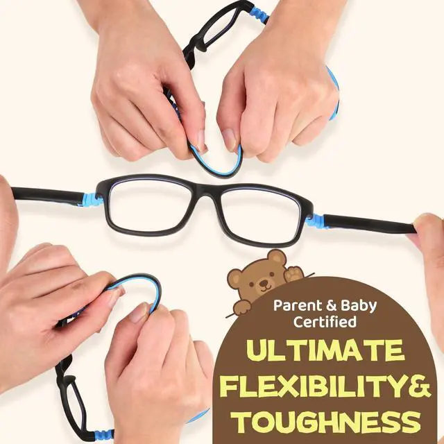 DescriptionMade of flexible TR90 material, these lightweight children's glasses won't hurt little noses even during all-day wear. The 360 bendable hinges survive rough handling, while the anti-slip elastic strap keeps them secure during sports. Choose from 2 fashionable colors with optimized frame curves for 2-15 year olds - includes a protective hard case perfect for school or travel.
