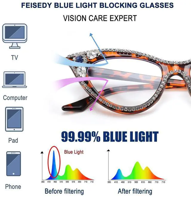 Blue Llight Blocking Lenses: The cat eye glasses use blue light blocking lens that filter blue light and UV, protect your eyes, and reduce eyestrain during use computer, phone or other electronic product. Suitable for work, study, shopping, partying, etc.
