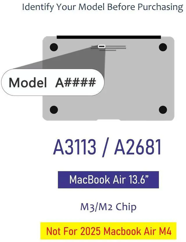 COMPATIBILITY **NOT Compatible with 2025 Macbook Air 13.6" (Model A3240, M4 Chip). ** Only Compatible with 2022~2024 Macbook Air 13.6" (Model A3113/A2681, M3 M2 Chip). Kindly check the model number "A****" on the back of the laptop before your pruchase. ^^ Extra Care Yet Not Bulky Our skin is capable of protecting the surface of your laptop from daily scratches, dust, oil, water and fingerprint. Your laptop remains fresh some years later. ^^ Elegant Style Our stylish design and printing tech give your laptop a 360 degree decorative and impressive looking.