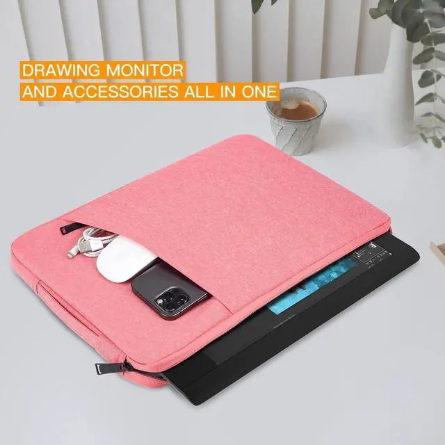 External Dimensions: 16.5 x 11.5 x 1.2 inch(42 x 29.2 x3cm). Please measure your tablet sleeve with internal dimensions before your purchase. ^^ Water Resistant & Slim LightweightThe drawing tablet sleeve bag made of high-quality waterproof Canvas fabric, which obstructs water and vapor effectively. Don't worry about your laptop and accessories splashing water or rain. Super slim and lightweight, it can easily be transported inside another bag, backpack or briefcase. ^^ Extra Pocket & Smoothly ZipperExtra pocket in front provides enough space to keep pens, charging cables organized and other accessories. Zipper glides smoothly and convenient access to your laptops. ^^ Shockproof Soft Lining & Side HandleEspecially soft and anti-static, the drawing tablet carrying bag of soft lining can effectively absorb impacts and reduce damages caused by accidentally bumping & scratches. The side handle helps you carry easily when you want it as a handbag. ^^ Compatible Drawing Devices Compatible with XP-PEN Artist12, XP-PEN Artist 13.3 Pro 13.3 Inch, XPPen Artist Pro 14, Huion KAMVAS Pro 13 GT-133.