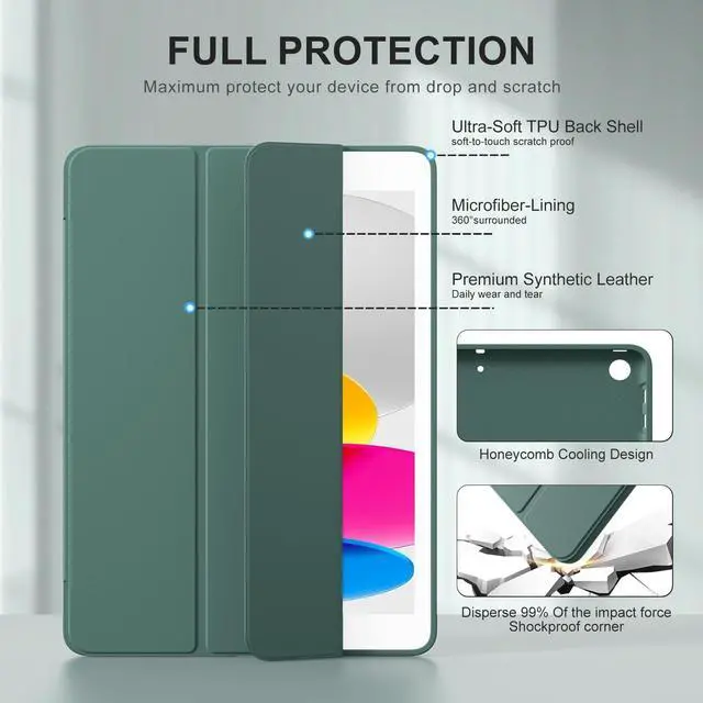 Full Protection: High-quality leather hard front cover with soft TPU back cover and soft microfiber interior, slim and lightweight design and exquisite craftsmanship, silky touch, bring 360 all-round protection to your iPad